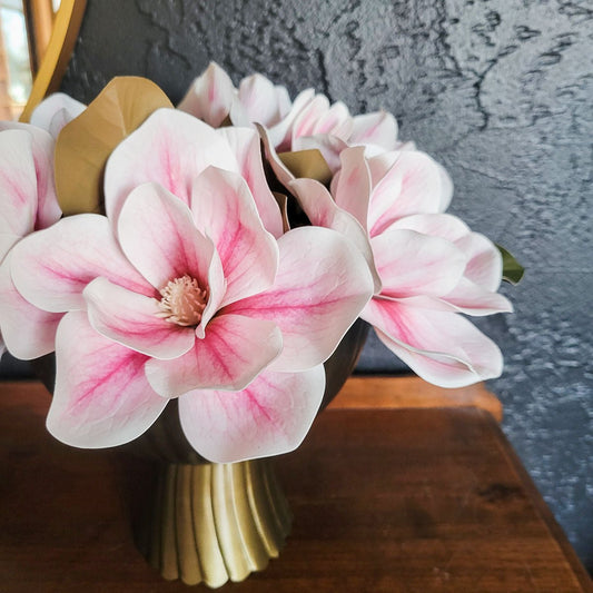 Real Touch Magnolia Flower Arrangement in Golden Urn