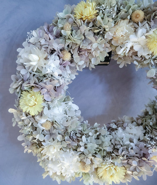 Custom Winter Wreath with Cotton Flowers, Juniper, Birch, and Pine Cones