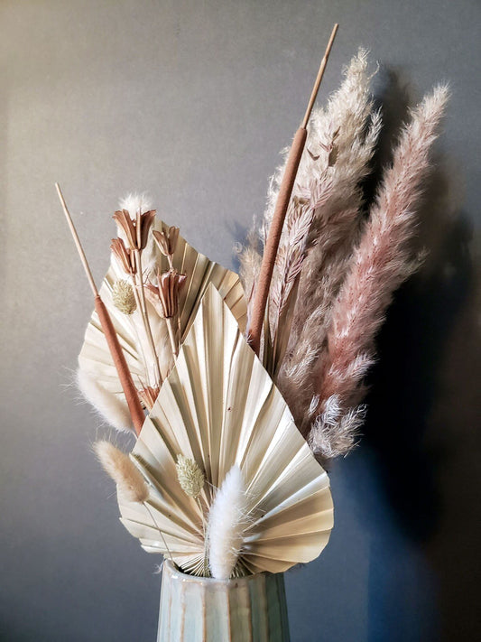 Dried Flower Bouquet w/ Pampas Grass, Bunny Tails, Dried Palm Fronds & Cattails