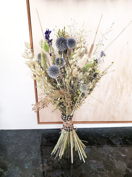 Dried Boho Flower Bouquet made out of Ornamental Grass & Blue Globe Thistles