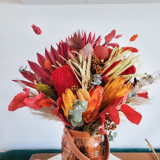 Dried King Banksia Protea Bouquet with trendy Fall Colors