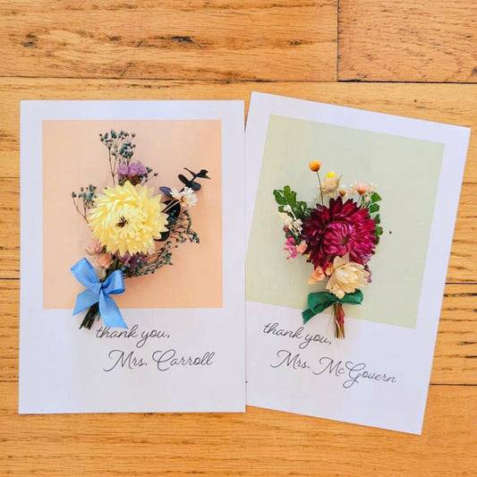 Customizable Teachers Gift Greeting Card w Dried Flowers