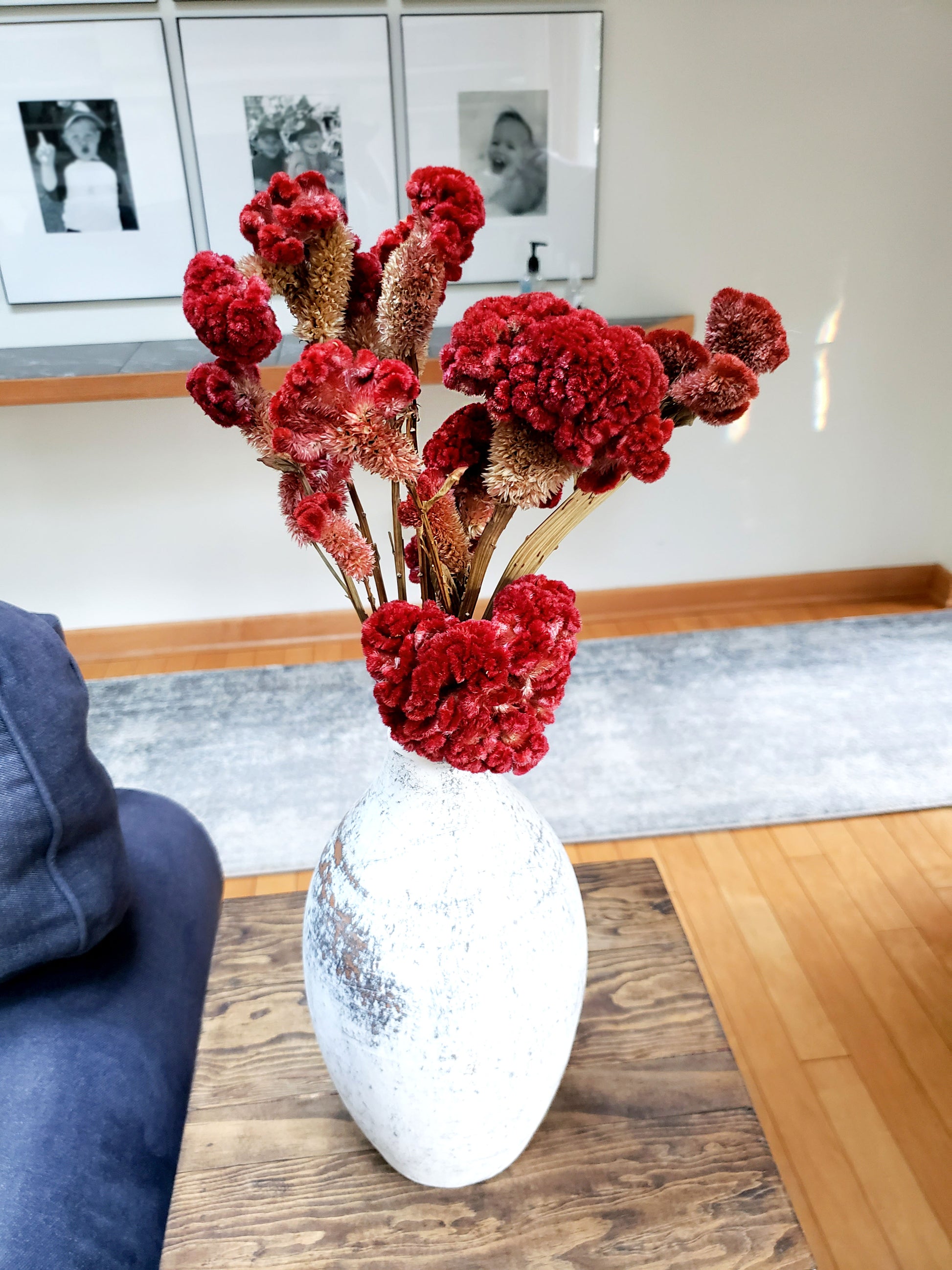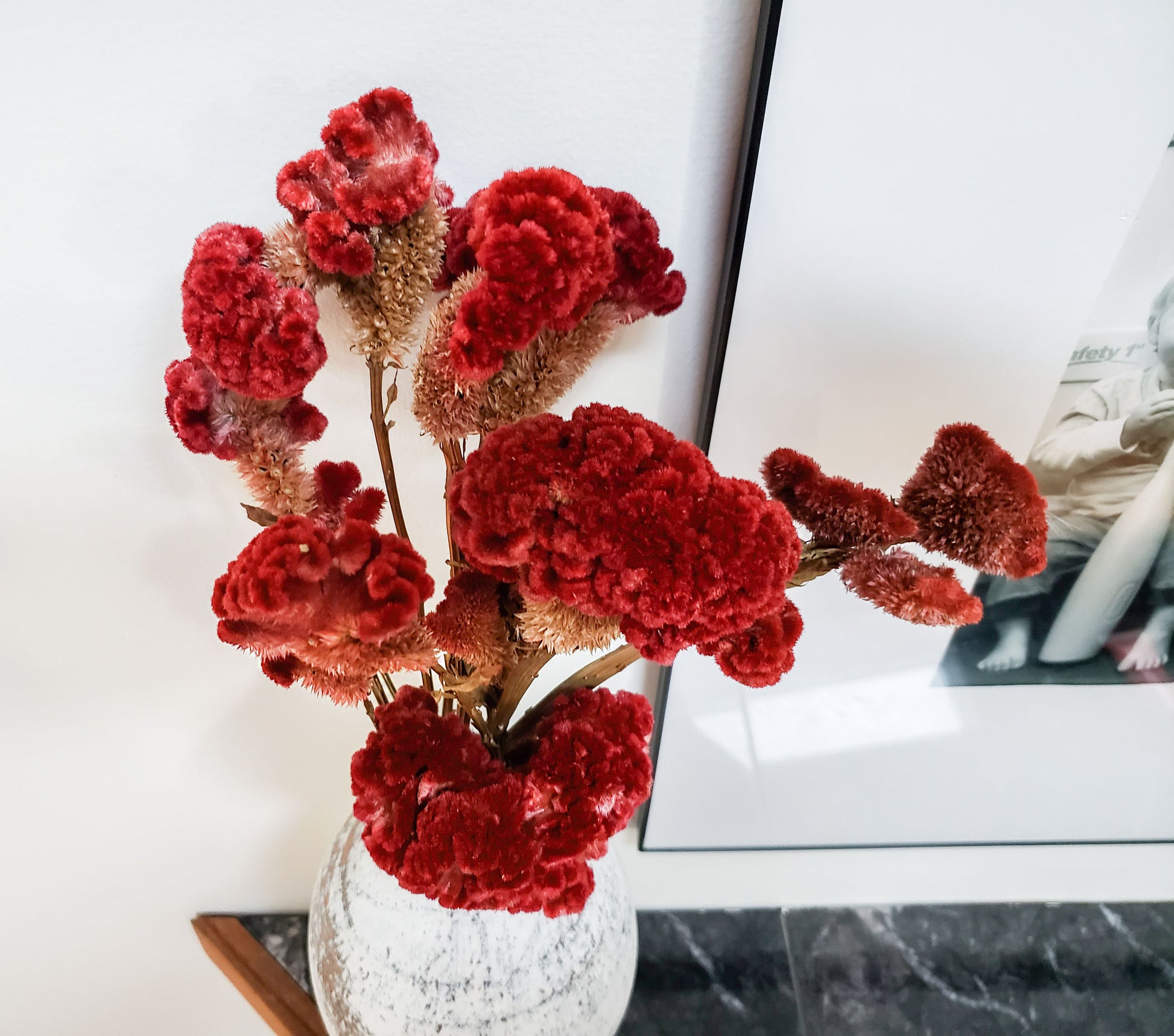 Bright, bold, and beautifully textured, this Dried Red Cockscomb Celosia Flower Bundle adds a rich splash of color to any decor. Naturally dried to retain its vivid, velvet-like quality, each 4 oz bundle showcases stunning 2-6" flower heads in deep red hues, offering a touch of luxurious warmth to your space. With 6-12 stems per bunch and a variety of stem lengths from 8 to 16 inches, these blooms are perfect for creating unique arrangements or adding a focal point to any floral design.