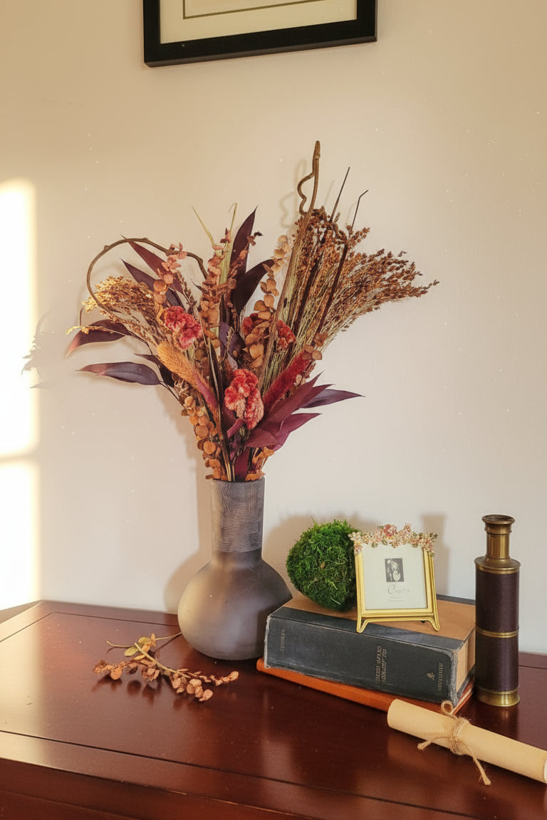 ed & Burgundy Fall Bouquet – 24″ Preserved & Dried Arrangement
