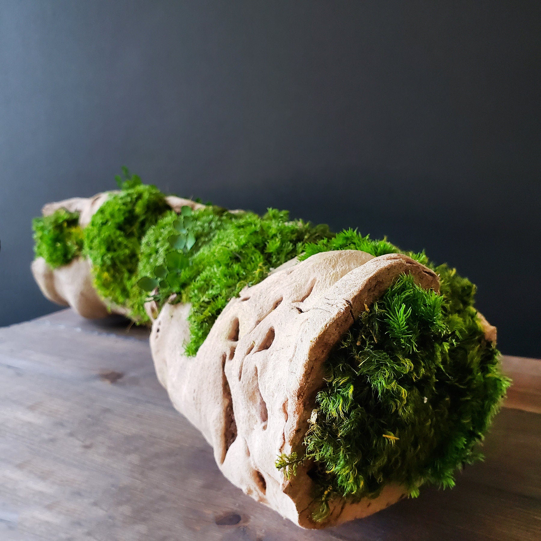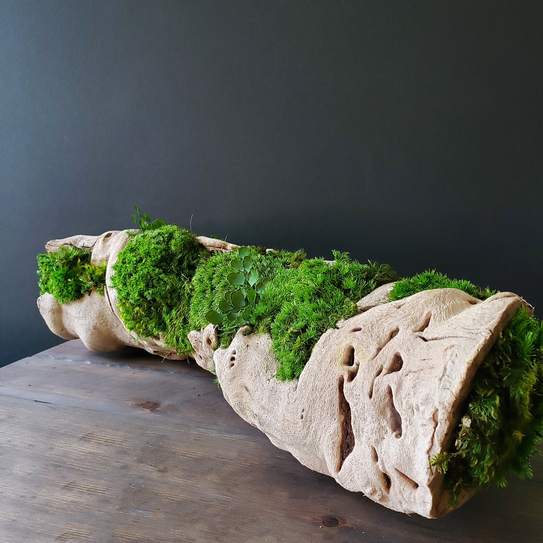 Explore the beauty of nature indoors with our Preserved Moss in Grapewood Log. This exquisite moss bowl combines trendy greenery with natural elegance. Featuring preserved bun moss, mood moss, ferns, and mushrooms, it's a unique masterpiece. The carefully curated grapewood log brings a touch of the forest to your home, creating a captivating focal point. Ideal for various home decor styles, from modern to rustic, it effortlessly blends into any space. Each bowl is one-of-a-kind, varying in appearance and size, adding a unique charm to your decor. Experience the magic of the urban jungle without any maintenance. Each natural wood bowl is unique and will vary in appearance and size.